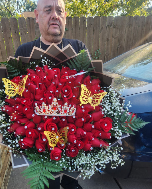 100 Roses Bouquet With Dimonds & Accessories 💐💎🦋