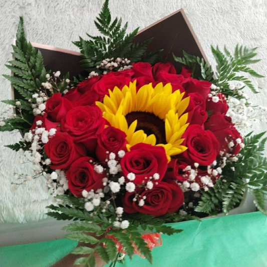 24 Roses & 1 Sunflower Bouquet 💐🌻🌹