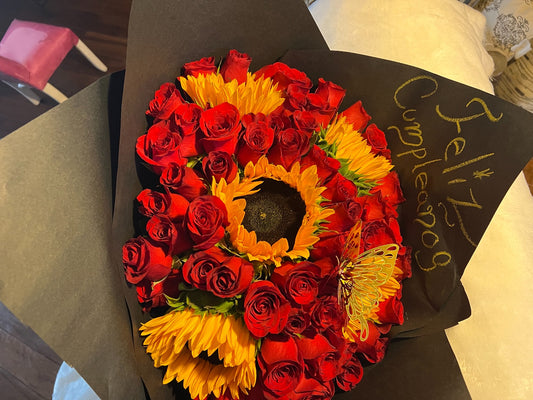 MEDIUM BOUQUET ROSES AND SUNFLOWERS 🌻🌹 50 ROSES AND 5 SUNFLOWERS